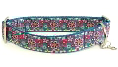 Single loop design house/ tag collar made with tough grosgrain trim securely stitched on to teal high quality webbing.
