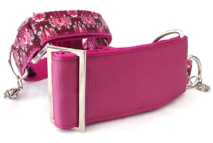 Soft dusk pinks, fuschia tones and roses thrown in for good measure make these lovely collars very flattering for any dog that wears them. Ziggy will be disappointed they're not in 'where are my sunglasses' pink, but sometimes Miss Ziggypants - less is more . . .